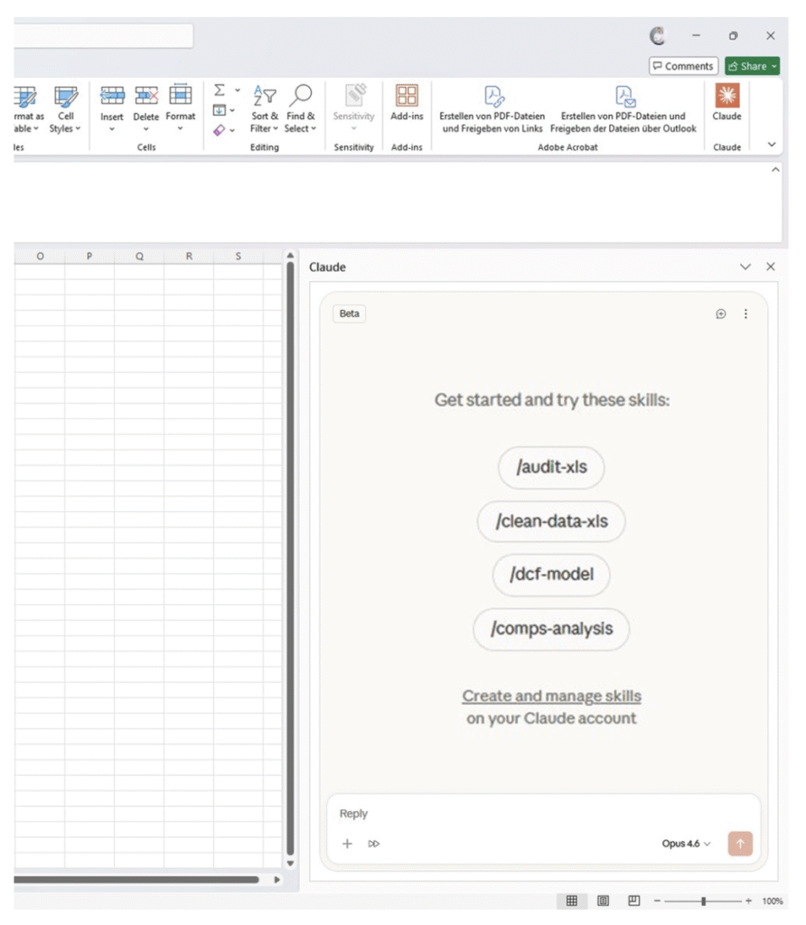 Anthropomorphisierend und stark vereinfacht empfiehlt es sich, Claude wie einen neuen Mitarbeiter anfangs eng zu führen und genau zu kontrollieren, was das Excel Add-In kann.