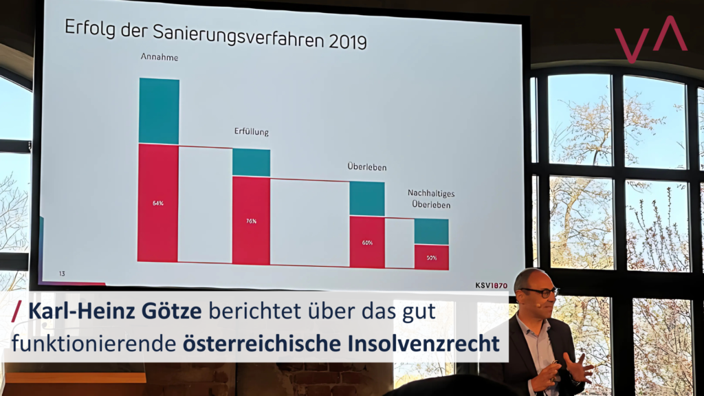 Karl-Heinz Götze vom KSV stellte die aktuellen Insolvenzzahlen vor. In Q1 2025 konnte nochmal ein deutlicher Anstieg der Insolvenzfälle um ca. 6 % beobachtet werden. Die betroffenen Passiva beliefen sich auf ca. EUR 2,5 Mrd.