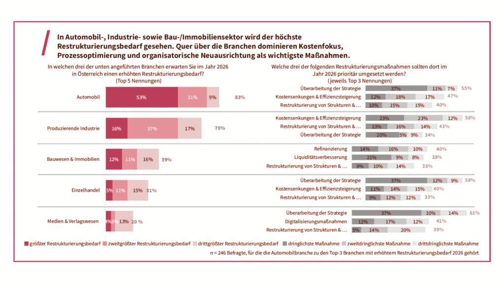 Automobilindustrie und produzierendes Gewerbe haben eindeutig den größten Restrukturierungsbedarf in Österreich.